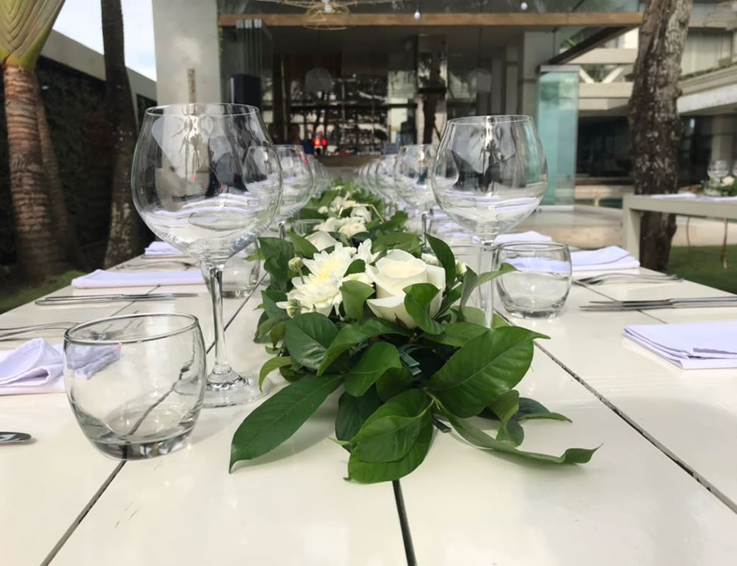 • Ceremony decoration include: Flower arch/backdrop flower, Altar table & flower centerpiece, Flower petal shower, 2 Standing flowers & flower aisle arrangement