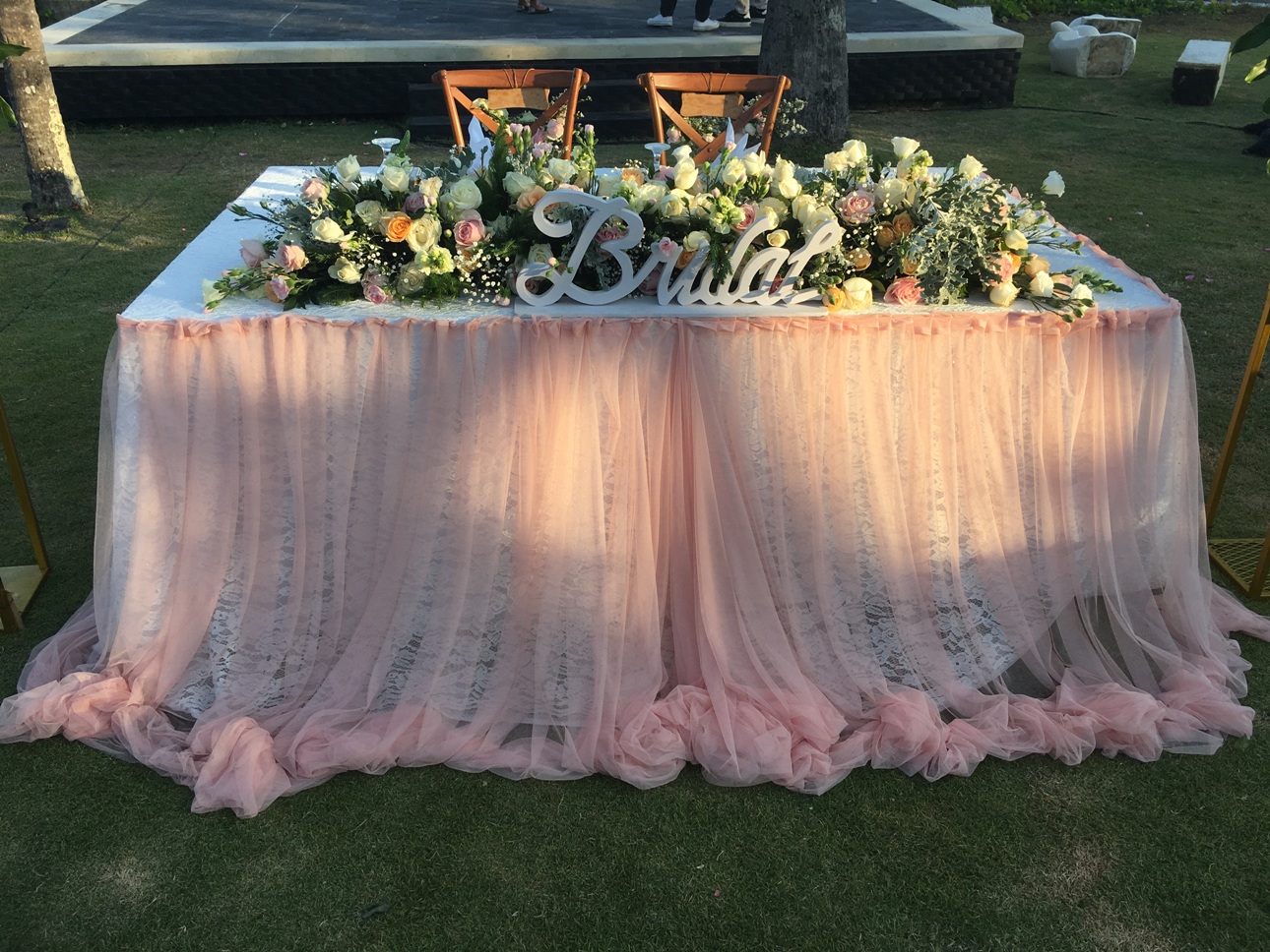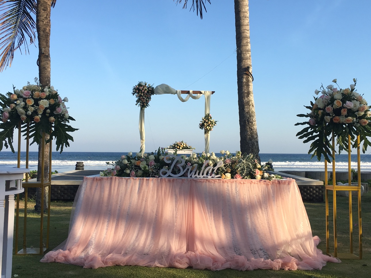 • Ceremony decoration include : flower arch, altar table and flower centerpiece, flower aisle, flower shower, standing flowers, and welcome board.